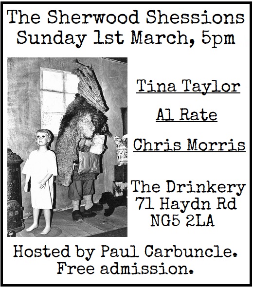 1st March 2026 (Sun.) – The Sherwood Shessions at The Drinkery alias Bradey’s Micro Bar, 71 Haydn Road, Nottingham, NG5 2LA, along with Chris Morris, Tina Taylor, and Al Rate.